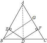 分析 连结AD.根据△ABC的面积=△ABD的面积+△ACD的面积,以及AB=AC,即可得到DE+DF=BG.