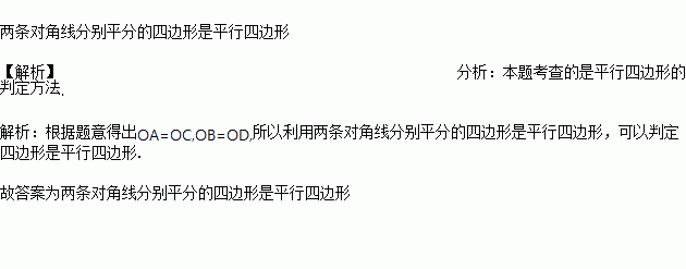 要做一个平行四边形框架,只要将两根木条AC、BD的中点重叠并用钉子固定,这样四边形ABCD就是平行四边形,这种做法的依据是 _______________________.