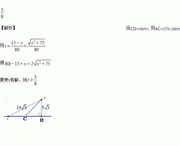 千米.一天,居民点B着火,消防员受命欲前往救火,若消防车在公路上的最快速度是80千米/小时,而在草地上的最快速度是40千米/小时,则消防车在出发后最快经过______小时可到达居民点B.(友情提醒:消防车可从公路的任意位置进入草地行驶.)