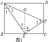 分析 (1)作EG∥AB,交AF于G,则∠1=∠3,EG∥CD,由已知条件求出AG=EG,再证出EG是梯形ABCF的中位线,得出AG=FG,因此EG=FG,得出∠4=∠5,由三角形内角和定理即可得出∠AEF=90°;