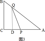 ②如图3,当3<t≤8时,如图,作QD⊥AC于点D,