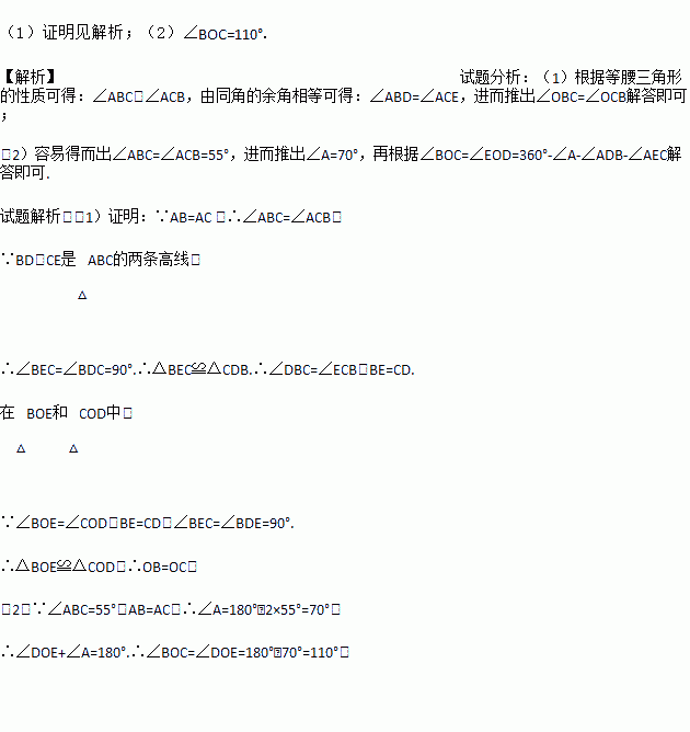 如图,已知△ABC中,AB=AC,BD、CE是高,BD与CE相交于点O.