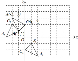解答 解:①如图,△A1B1C1为所作,A1(2,-3),B1(1,-1),C1(0,-2);②如图,△A2BC2为所作.