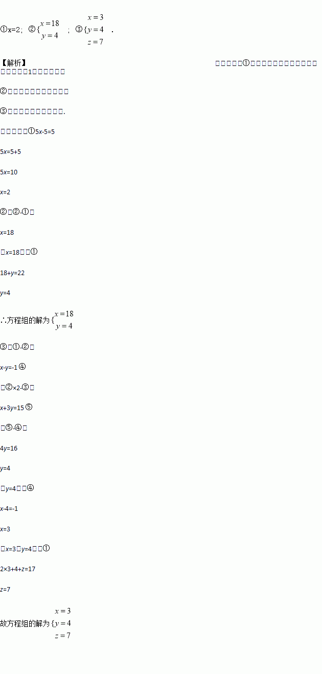 x2+4x=3 ⑤x-1=