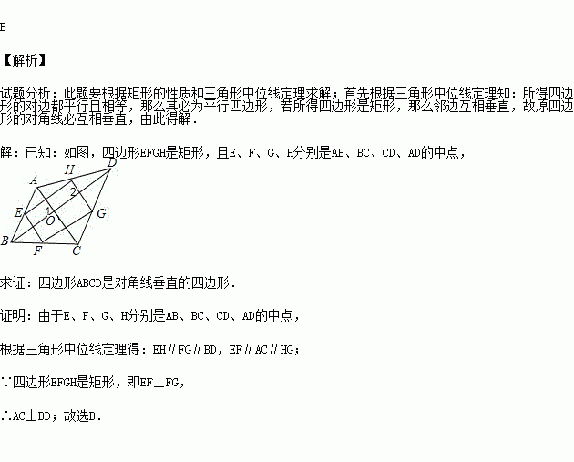 (2015秋•海门市期末)若顺次连接四边形ABCD各边中点所得四边形是矩形,则四边形ABCD必然是( )
