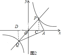 分析 先求得交点P(1,k),Q(-1,-k),①当∠APQ=90°时,根据勾股定理求得OP=$\sqrt{1+{k}^{2}}$,然后根据余弦函数即可求得k的值,从而求得∠POA的度数.②当∠PAQ=90°时,