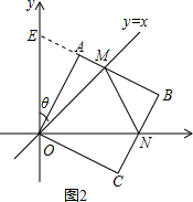 (3)当θ=22.5°时,△OMN的面积最小,