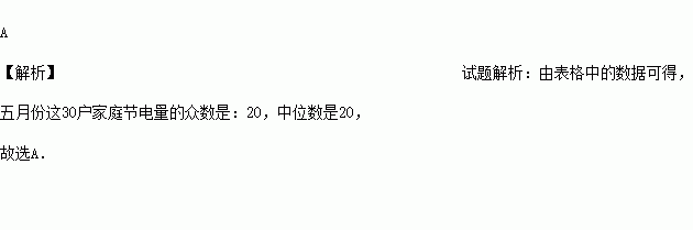 则五月份这30户家庭节电量的众数与中位数分别为( )