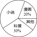 | D、“漫画”所在扇形圆心角的度数为72° |