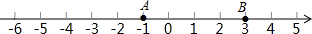 已知数轴上两点A、B对应的数分别为-1、3,点P为数轴上一动点,其对应的数为x.