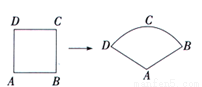 如图,某数学兴趣小组将边长为4的正方形铁丝框ABCD变形为以A为圆心,AB为半径的扇形 (忽略铁丝的粗细),则所得的扇形DAB的面积为__________ 。