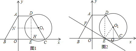 £¨2£©¢Ù¸ù¾ÝÔ²ÖܽǶ¨ÀíµÃ¡ÏDEC=90¡ã£¬¼´DE¡ÍOC£¬ÔÙ¸ù¾ÝµÈÑüÖ±½ÇÌÝÐεÄÐÔÖʵÃCE=OB=2£»×÷O1N¡ÍAOÓÚN£¬Èçͼ1£¬Ò×µÃO1NΪÌÝÐÎAOCDµÄÖÐλÏߣ¬ÓÚÊǿɼÆËã³öO1N=$\frac{1}{2}$£¨AD+OC£©=3£¬È»ºó¸ù¾ÝÖ±ÏßÓëÔ²µÄλÖùØÏµ¿ÉÅжϡÑO1ÓëyÖáÏàÀ룻