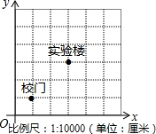 分析 直接利用校门的坐标为(1,1),得出原点位置,进而得出实验楼的坐标.