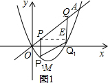 (2)设点P在点Q的左下方,过点P作PE⊥QQ1于点E,如图1所示.![]()