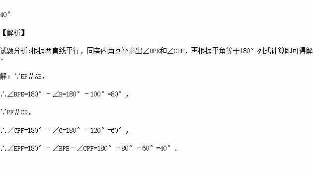 如图,直线AB、CD相交于点E,DF∥AB.若∠D=65°,则∠AEC= .