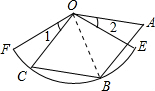 如图,四边形OABC为菱形,点B、C在以点O为圆心的弧EF上,若OA=3,∠1=∠2,则扇形OEF的周长为