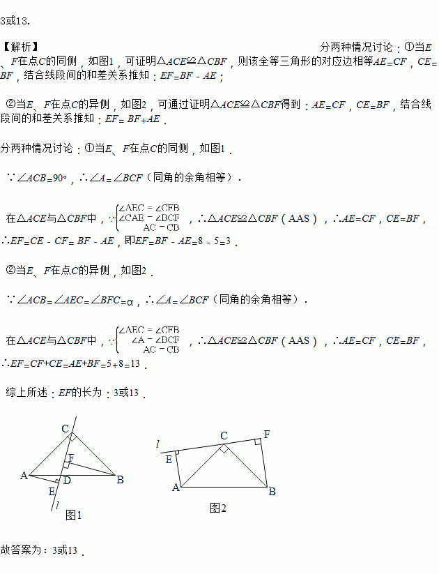 ,垂足分别为E、F.若AE=5,BF=8,则EF=_______.![]()