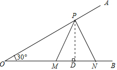 分析 过P作PD⊥OB于点D,由PM=PN,利用等腰三角形三线合一的性质得到D为MN中点,根据MN=12求出MD的长,然后结合勾股定理可以求得PD的长度,最后由含30度角的直角三角形的性质来求OP的长度.