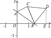 分析:先确定直线与x轴和y轴交点,并确定OA,OB的长度,三角形OAB的内角度数,到点D时,作点D到x轴的垂线,确定∠DBE的角度,进而确定点D的坐标.