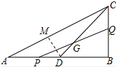 分析 根据题意得出AP=BQ=t,则BP=10-t,CQ=5-t,分两种情况:①当∠DPG=∠A时,PQ∥AC,得出比例式,即可得出t的值;②当∠DPG=∠ACD时,作DM⊥AC于M,则∠DMA=∠DMC=90°,由三角函数和勾股定理得出DM、AM、CM,由三角函数得出$\frac{DM}{CM}$=$\frac{BQ}{BP}$,即可求出t的值;即可得出结果.
