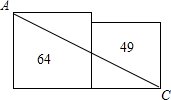 如图,两个正方形的面积分别是64和49,则AC的长为