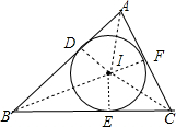 解答:证明:如图,作ID⊥AB于D,IE⊥BC于E,IF⊥AC于F,连接IA、IB、IC,