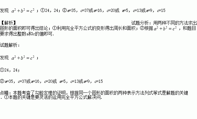 探索发现:试用不同的方法计算图1的面积,你能发现a、b、c间有什么数量关系?