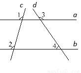 如图,直线a,b被直线e,d所截,若∠1=∠2,∠3=125°,则∠4的度数为( ).