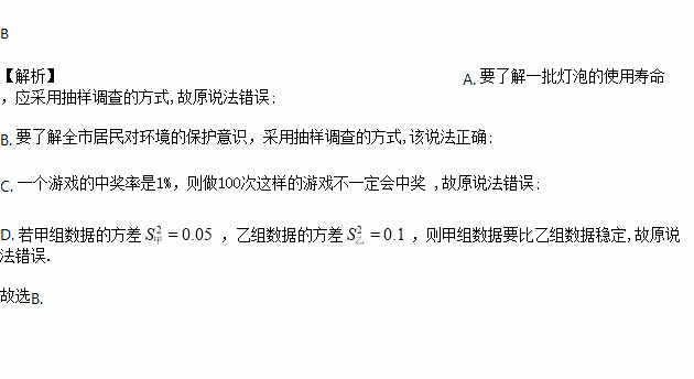 A. 要了解一批灯泡的使用寿命,采用全面调查的方式