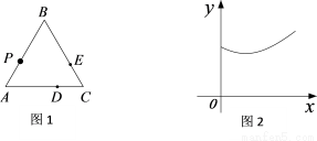 如图1,△ABC是一块等边三角形场地,点D,E分别是AC,BC边上靠近C点的三等分点.现有一个机器人(点P)从A点出发沿AB边运动,观察员选择了一个固定的位置记录机器人的运动情况.设AP=x,观察员与机器人之间的距离为y,若表示y与x的函数关系的图象大致如图2所示,则观察员所处的位置可能是图1的( )
