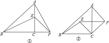 分析 (1)根据等腰直角三角形的性质得CA=CB,CE=CF,∠ACB=∠ECF=90°,所以在图②中,当△EFC绕C逆时针旋转一定的角度后,仍然有CE=CF,∠ECF=90°,利用等角的余角相等可得∠BCE=∠ACF,则利用旋转的定义,将△ACF绕点C逆时针旋90°可得到△BCE,然后根据旋转的性质即可得到BE=AF;