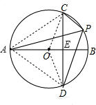 分析 作辅助线,构建三角形全等,证明△AOC≌△AOD和△AEC≌△AED,得∠AEC=∠AED,因为∠AEC+∠AED=180°,所以∠AEC=∠AED=90°,则CD⊥AB.
