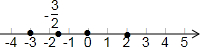 解答 解:如图所示,,故-3<-$\frac{3}{2}$<0<2.