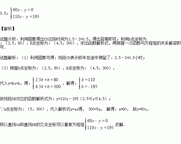 (2)直线OA和直线DE的交点坐标可以看做方程组 的解.