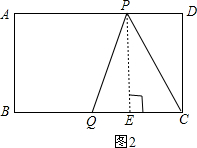 当P、Q分别在AD边和BC边上运动时,(1.5<t≤3.5),如图2,![]()