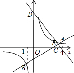 分析:做出线段AC的垂直平分线,交y轴与点D,将A与B坐标代入反比例解析式求出m与n的值,确定出A与B坐标,设直线AB解析式为y=kx+b,将A与B坐标代入求出k与b的值,确定出直线AB解析式,求出C坐标,再求出线段AC中点坐标,由DE为线段AC的垂直平分线,根据直线AB斜率求出DE斜率,得出直线DE解析式,令x=0求出y的值,即可确定出D坐标.
