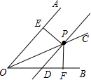 (3)利用量角器画∠PEO=∠PFO=90°得到相等OA和OB,根据角平分线的性质可判断PE=PF.
