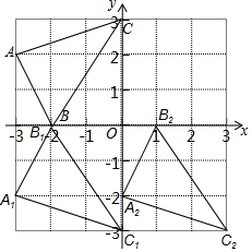 解答 解:(1)①如图所示:△A1B1C1与△A2B2C2,即为所求;②B2(1,0),C2(3,-3);(2)线段C1C2上的任一点P的坐标为:(x,-3)(0≤x≤3).