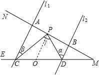 如图,已知l1∥l2,MN分别和直线l1、l2交于点A、B,ME分别和直线l1、l2交于点C、D,点P在MN上(P点与A、B、M三点不重合).