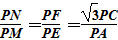 | (3)在Rt△ABC中,过点P作PE⊥AB于E,PF⊥BC于点F, ∴四边形BFPE是矩形, ∴∠EPF=90°, ∵∠EPM+∠MPF=∠FPN+∠MPF=90°, 可知∠EPM=∠FPN, ∴△PFN∽△PEM, ∴ 又∵Rt△AEP和Rt△PFC中:∠A=30°,∠C=60°, ∴PF= ∴ ∴ |