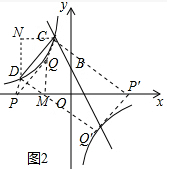 (3)如图2中,过D作DN∥y轴,CN∥x轴,QM⊥x轴于M.![]()