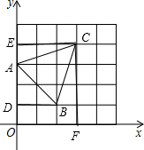 ∴S△ABC=S长方形DFCE-S△ADB-S△ACE-S△CBF=$3×3-\frac{1}{2}×2×2-\frac{1}{2}×3×1-\frac{1}{2}×1×3=4$.