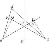 (2)首先根据全等三角形的判定方法,判断出△BGP≌△BDP,所以PG=PD;然后根据全等三角形的判定方法,判断出△BGP≌△CHP,所以PG=PH;进而判断出PE+PF=2PD即可.