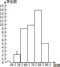| 成绩表 | 49.5~59.5 | 59.5~69.5 | 69.5~79.5 | 79.5~89.5 | 89.5~99.5 |