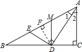 分析:过点D作DF⊥AB于点F.根据角平分线AD的性质,以及已知条件“BD=2,CD=1”可以推知∠B=30°;然后在含有30°角的直角△AFD和AED中求MD的长度.