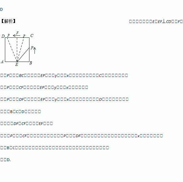 如图,在正方形ABCD中,AB=2,E是AB的中点,动点P从点B开始,沿着边BC,CD匀速运动到D,设点P运动的时间为x,EP=y,那么能表示y与x函数关系的图象大致是( )