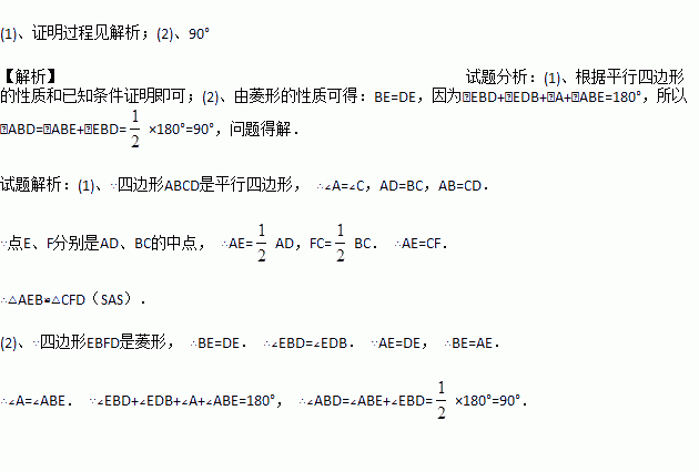 (2)若四边形EBFD是菱形,求∠ABD的度数.