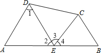 解答:解:∵∠A=∠B=∠DEC,