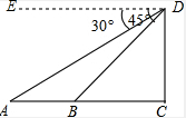 分析 在Rt△ACD中,根据已知条件求出AC的值,再在Rt△BCD中,根据∠EDB=45°,求出BC=CD=21m,最后根据AB=AC-BC,代值计算即可.