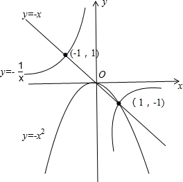 y=-xÓëy=-$\frac{1}{x}$µÄ½»µã×ø±êΪ£¨-1£¬1£©£¬£¨1£¬-1£©£¬º¯Êýy=-xÓëy=-x2µÄͼÏó½»µã×ø±êΪ£¨0£¬0£©£¬£¨1£¬-1£©£¬º¯Êýy=-x2£¬y=$\frac{1}{x}$µÄ½»µã×ø±êΪ£¨1£¬-1£©£»